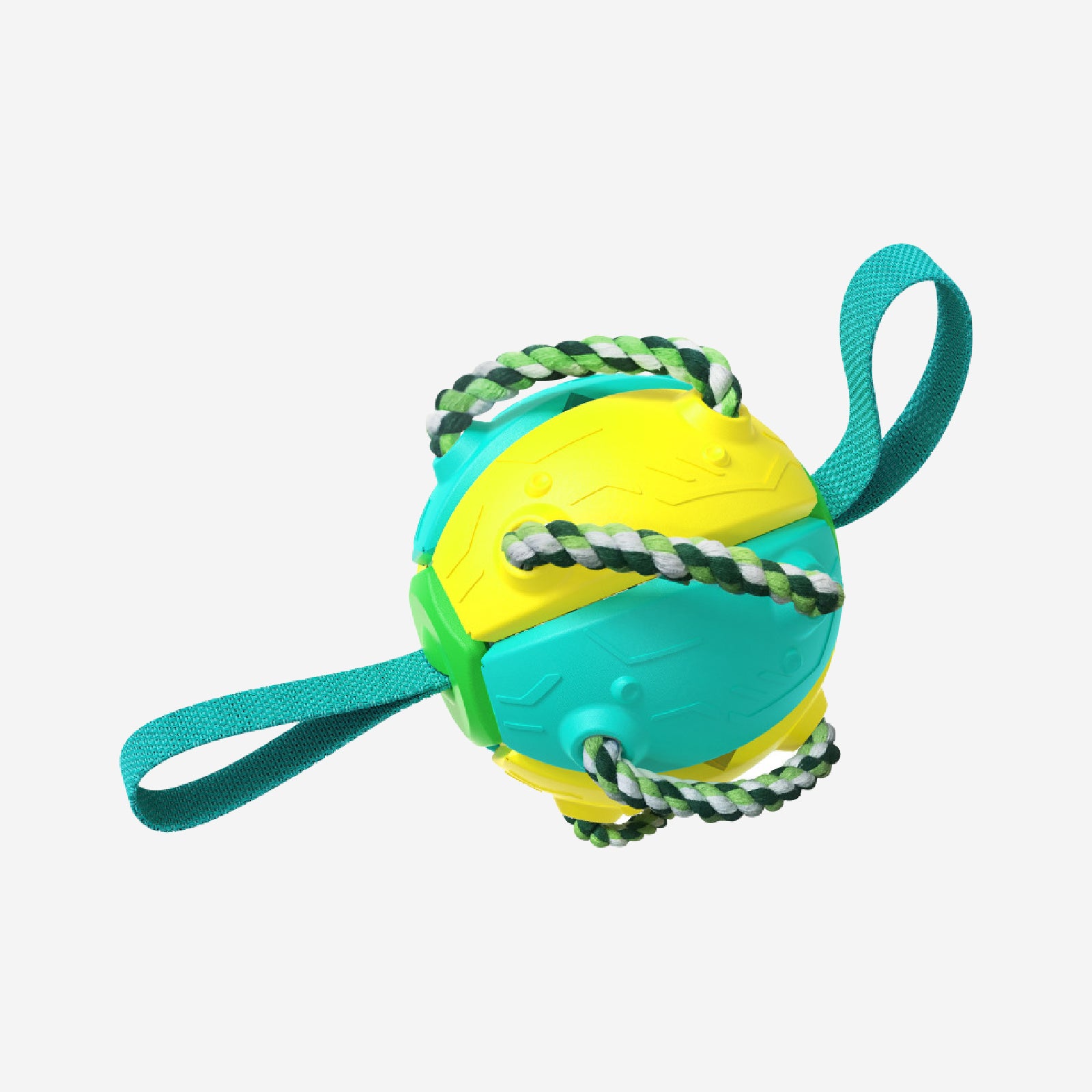 - 🐾【Interactive Training Ball】 This dog toy ball can be kicked and played like a football when it is in the shape of a ball. When it is in the shape of a Frisbee, it can be thrown far away. the lovely dogs can fully Enjoy interactive play and exercise when they catch the Frisbee or retrieves the interactive ball, It can also be used as a water interactive toy when the dog is swimming outdoors.