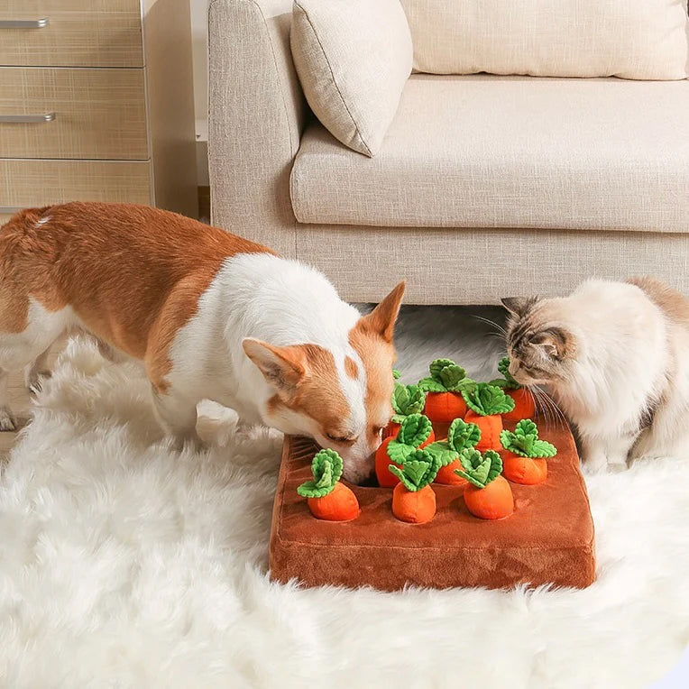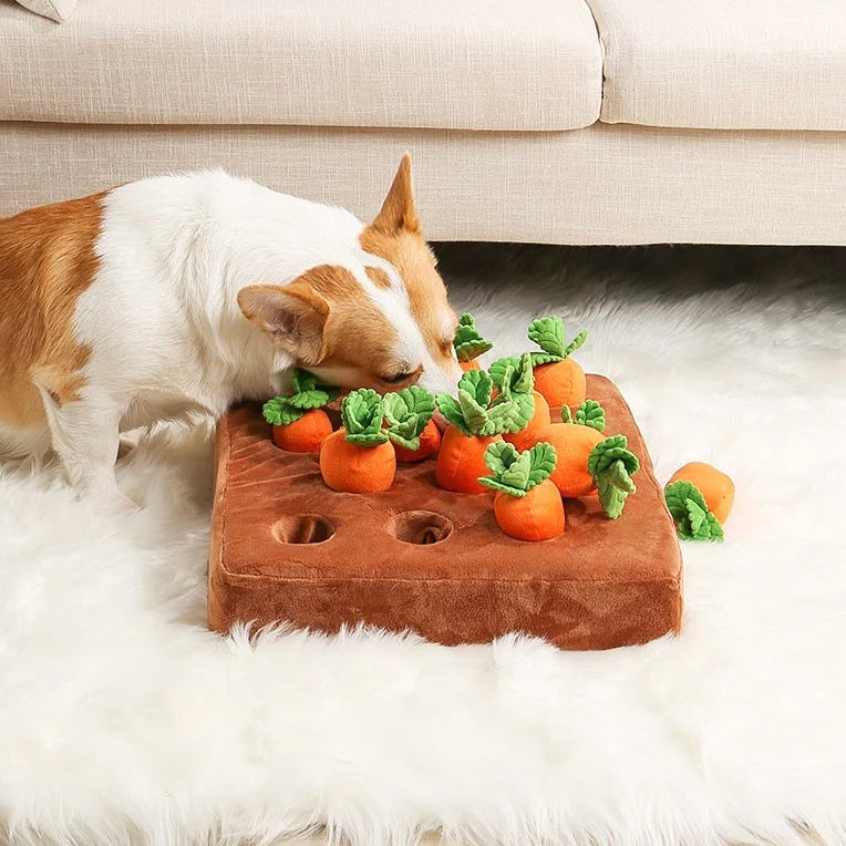 Simply hide treats in the soil, and watch them sniff and harvest the carrots.