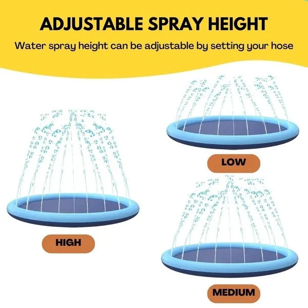 - Easy to Set Up and Storage: Plug it into any garden hose or PVC tubing and you will get a blow-up pool, simply adjust the water pressure to control the height of water streams, when you’re done, easily drain the water, wash the splash mat and hang it over to dry.