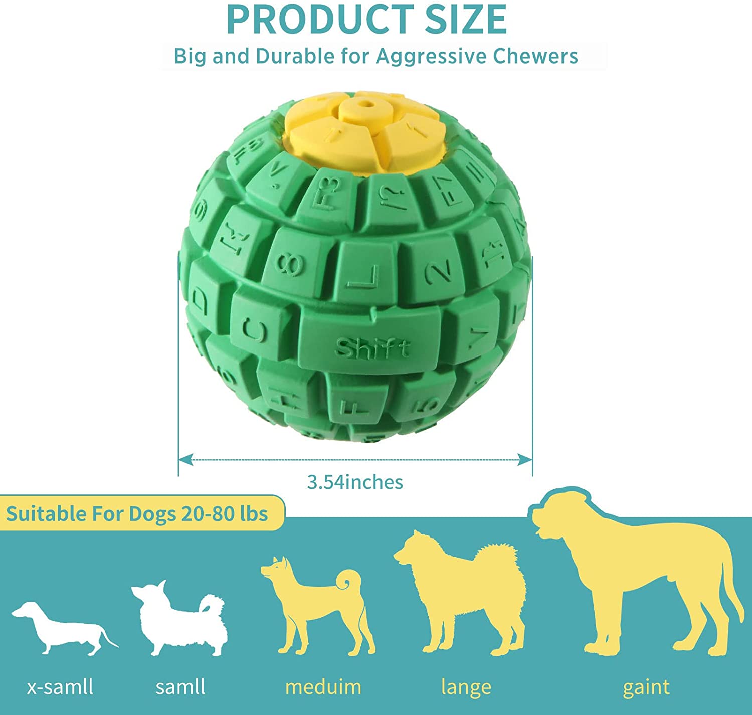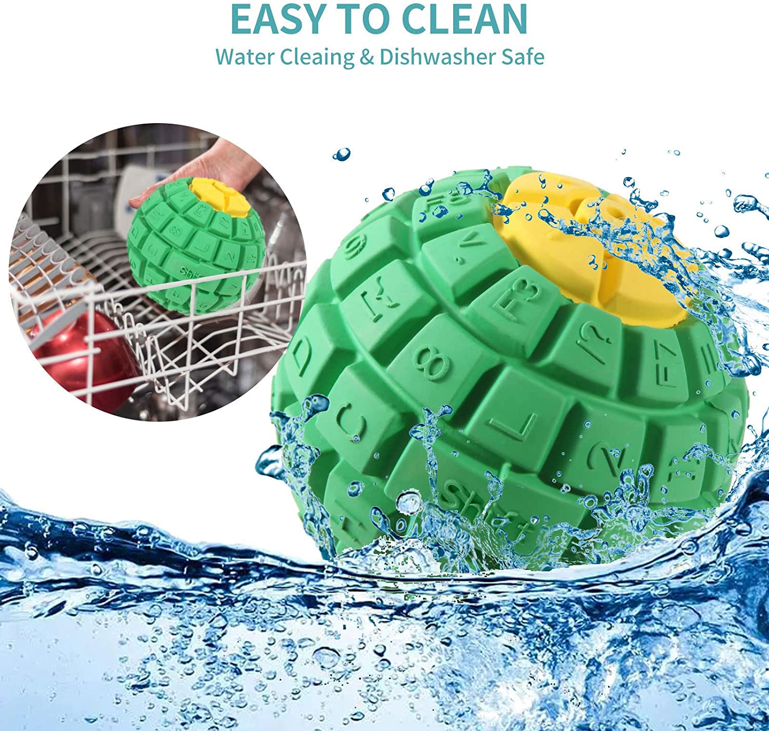Easy to Clean & Carry. Dishwasher Safe. 3.5" diameter dog chew balls, not only for indoor but also easy to carry and play outdoors with your pet. Beauty color and appearance design are ideal as gifts for our fur friends, as well as a dog gift shared with friends, a Christmas pet gift.