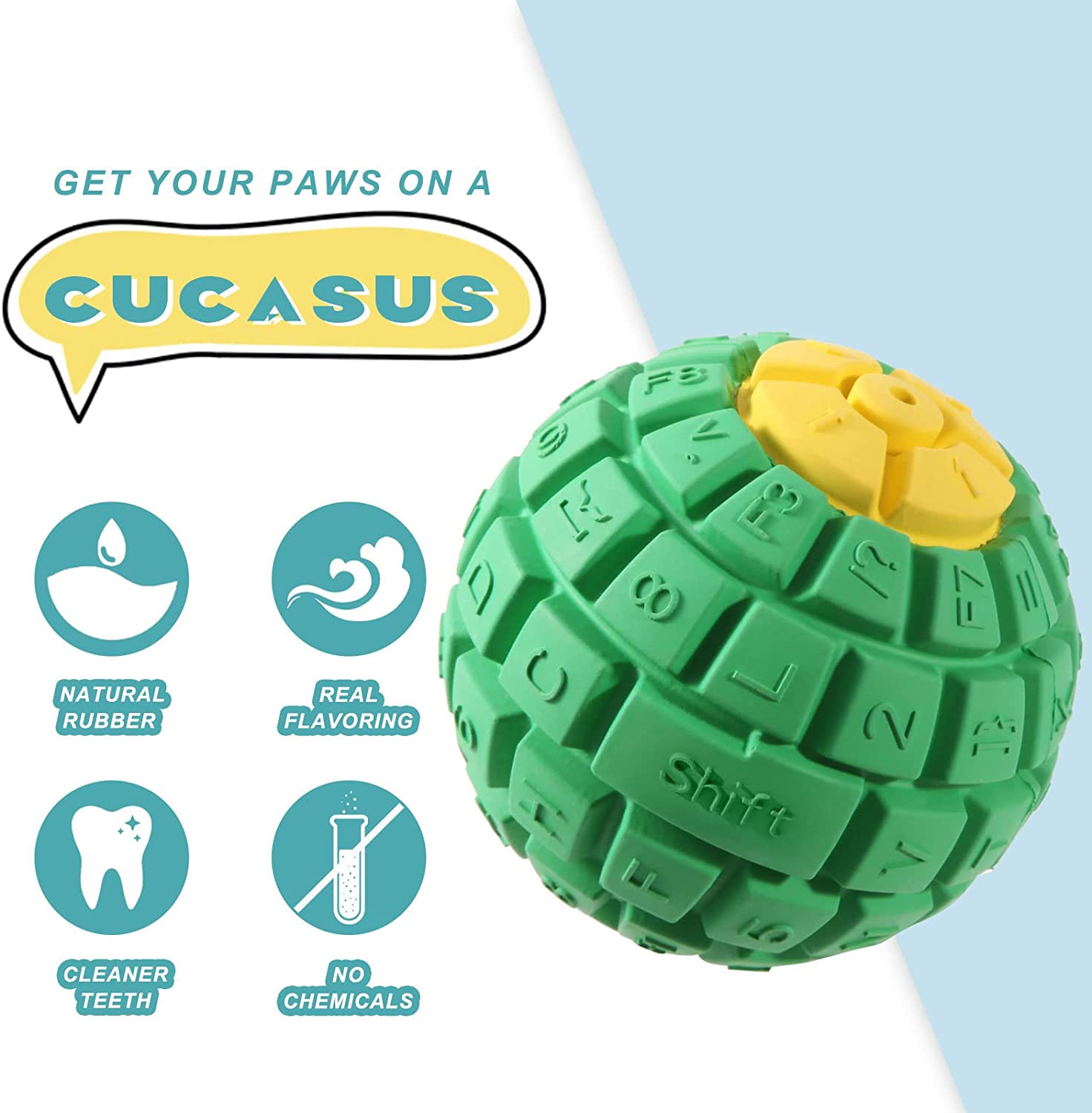 Safe Dog Chew Toy. Made of 100% natural rubber and uses 100% real food ingredients for flavor and scent. Don't worry about the 1‰ nibble will damage the stomach and intestines.